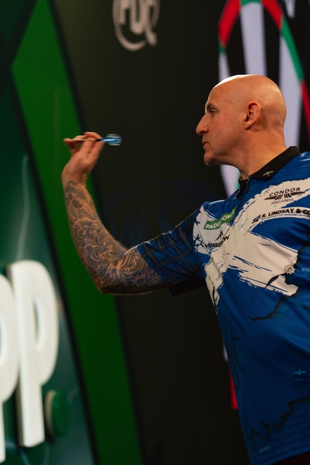 Alan Soutar in action during day five of the 2025/26 Paddy Power World Darts Championship at Alexandra Palace LONDON, ENGLAND on 15th DECEMBER 2025., Credit:Oleksii Ovcharenko / Avalon