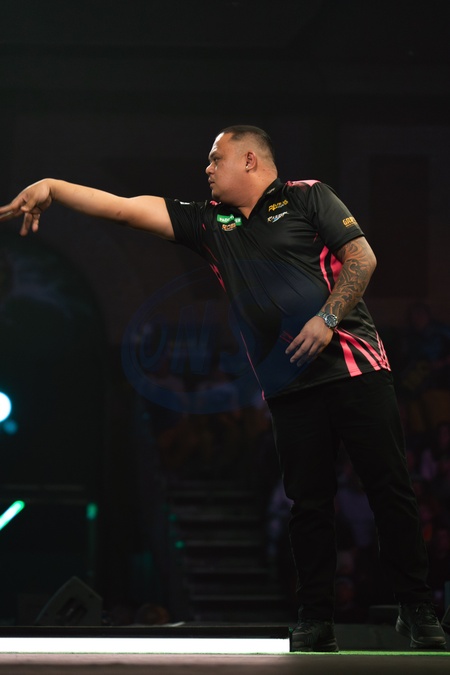 Paolo Nebrida in action during day five of the 2025/26 Paddy Power World Darts Championship at Alexandra Palace LONDON, ENGLAND on 15th DECEMBER 2025., Credit:Oleksii Ovcharenko / Avalon