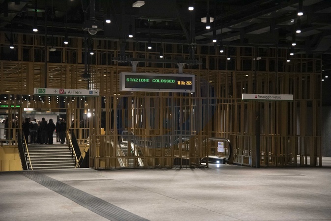 Rome, Italy. 16th december 2025. Inauguration of the Colosseum stop on Metro Line C. Interior of the Colosseum Metro Line C station. EDITORIAL USE ONLY - NOT FOR COMMERCIAL USE. It may only be used in accordance with the context in which it was taken, and without any intent to defame or cause harm to the individuals depicted. By Using it, you agree to these terms of use., Credit:Diego Nangano Cappello / Avalon