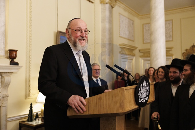 16/12/2025. London, United Kingdom. Chief Rabbi Ephraim Mirvis speaks as Prime Minister Keir Starmer hosts a reception and lights Chanukah Menorah to celebrate Chanukah in 10 Downing Street., Credit:Simon Dawson / Avalon