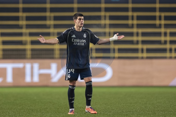 Alvaro Lezcano of Real Madrid reacts during the Premier League International Cup match Manchester City vs Real Madrid at Joie Stadium, Manchester, United Kingdom, 16th December 2025, Credit:Mark Cosgrove/News Images / Avalon
