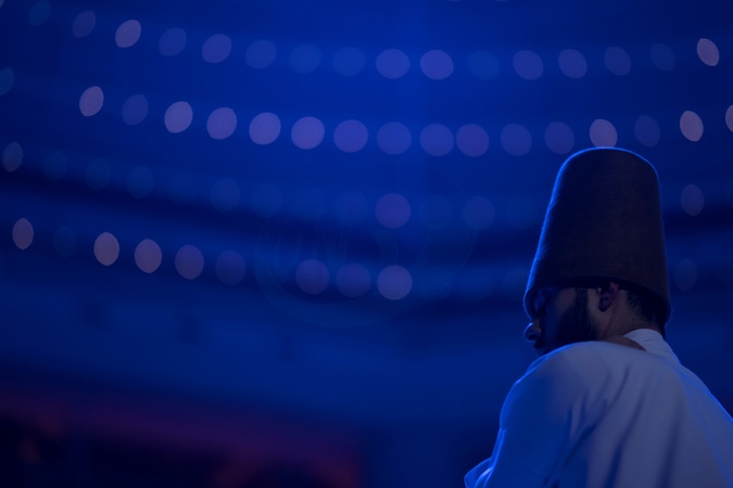 December 16, 2025, Konya. A semazen during the ceremony. During the week dedicated to the 752nd anniversary of the death of the mystic Mevlana Celaleddin Rumi, musicians and semazen (whirling dervishes) performed a performance at the Mevlana Kultur Merkezi in Konya., Credit:Valeria Ferraro / Avalon