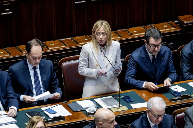 Chamber of Deputies, Communications from the Prime Minister in view of the European Council. Pictured are the Prime Minister Giorgia Meloni, the Minister for Relations with Parliament Luca Ciriani, and the Minister of Infrastructure and Transport Matteo Salvini. ROme, Dec 17th 2025, Credit:Francesco Fotia / Avalon
