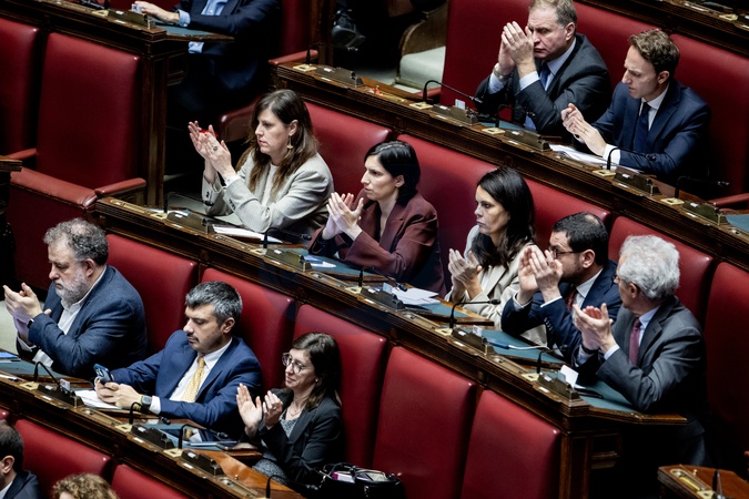 Chamber, Communications from the Prime Minister in view of the European Council, pictured: Elly Schlein and Chiara Braga ROme, Dec 17th 2025, Credit:Francesco Fotia / Avalon