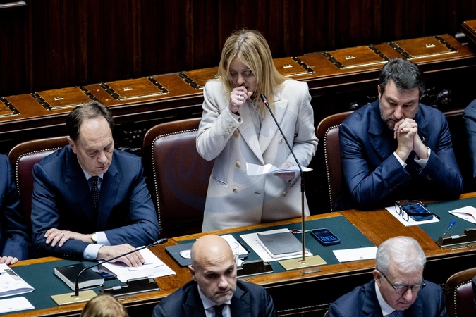 Chamber of Deputies, Communications from the Prime Minister in view of the European Council. Pictured are the Prime Minister Giorgia Meloni, the Minister for Relations with Parliament Luca Ciriani, and the Minister of Infrastructure and Transport Matteo Salvini. ROme, Dec 17th 2025, Credit:Francesco Fotia / Avalon