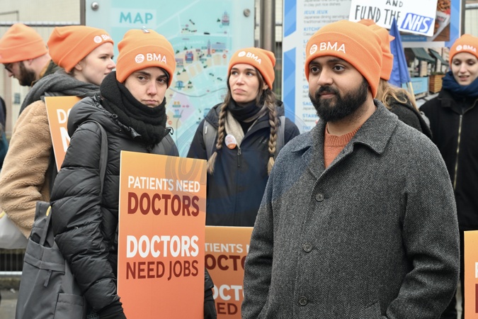 London, UK. BMA Resident Doctors Strike. Resident Doctors outside St Thomas's Hospital joined a British Medical Association (BMA) picket calling for jobs and pay restoration., Credit:Michael Melia / Avalon