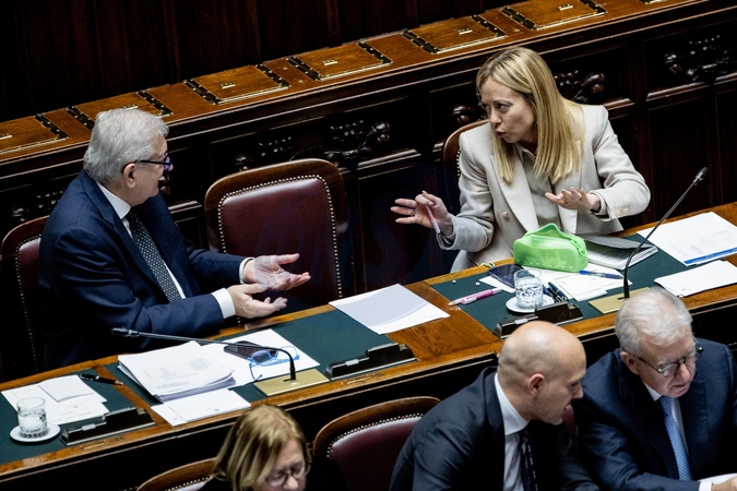 Chamber of Deputies, Communications in view of the European Council, the Prime Minister's response. Pictured are Prime Minister Giorgia Meloni and Minister for European Affairs Tommaso Foti. . Rome, Italy 17 December 2025, Credit:Francesco Fotia / Avalon