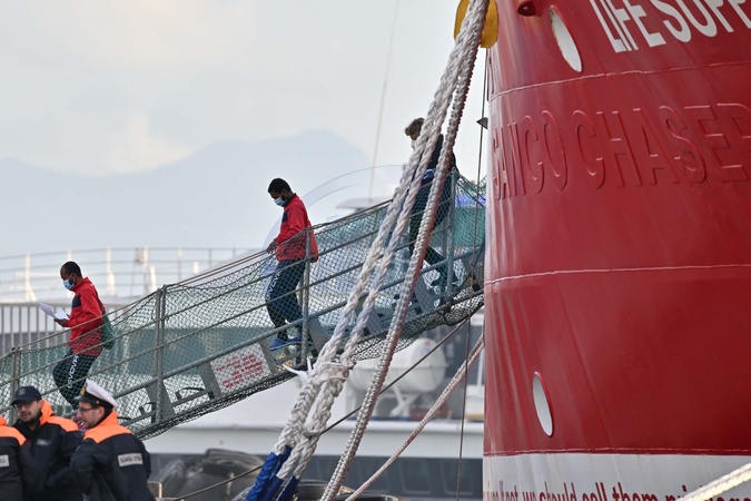 Emergency's Life Support ship arrives at the port to disembark 113 rescued shipwrecked people. Naples 17 December 2025, Credit:Felice De Martino / Avalon
