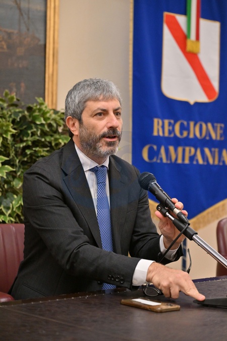 First press conference of the new President of the Campania Region, Roberto Fico. Pictured: Roberto Fico . Naples, Italy 15 December 2025, Credit:Felice De Martino / Avalon