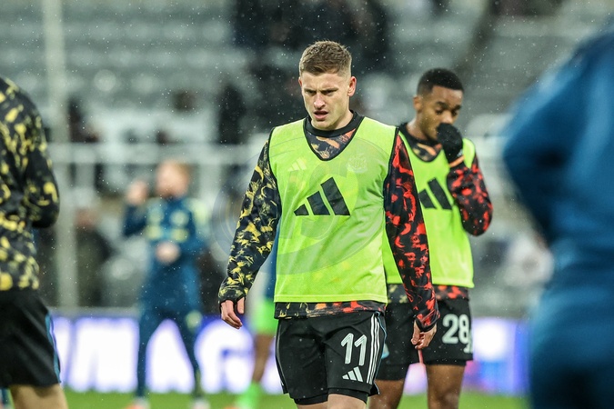 Harvey Barnes of Newcastle United in the pregame warmup session during the Carabao Cup Quarter Final match Newcastle United vs Fulham at St. James's Park, Newcastle, United Kingdom, 17th December 2025, Credit:Ae Cosgrove/News Images / Avalon