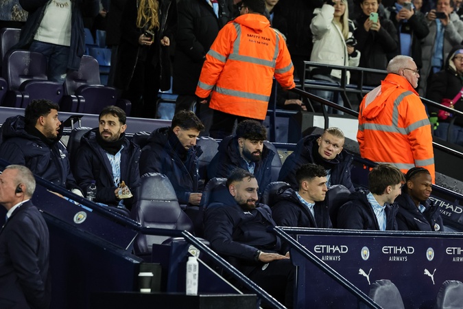 Manchester City's bench during the Carabao Cup Quarter Final match Manchester City vs Brentford at Etihad Stadium, Manchester, United Kingdom, 17th December 2025, Credit:Mark Cosgrove/News Images / Avalon