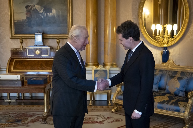 King Charles III during an audience with President of Romania Nicusor Dan at Buckingham Palace, London. Picture date: Wednesday December 17, 2025., Credit:Aaron Chown / Avalon