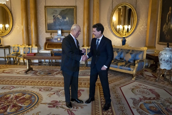 King Charles III during an audience with President of Romania Nicusor Dan at Buckingham Palace, London. Picture date: Wednesday December 17, 2025., Credit:Aaron Chown / Avalon