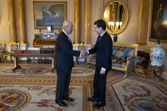 King Charles III during an audience with President of Romania Nicusor Dan at Buckingham Palace, London. Picture date: Wednesday December 17, 2025., Credit:Aaron Chown / Avalon