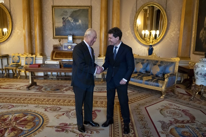 King Charles III during an audience with President of Romania Nicusor Dan at Buckingham Palace, London. Picture date: Wednesday December 17, 2025., Credit:Aaron Chown / Avalon