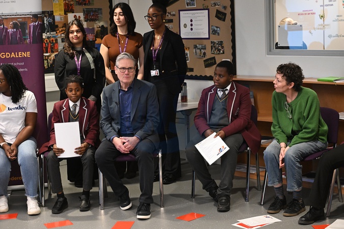 UK Prime Minister Keir Starmer visits the St Mary Magdalene school in London