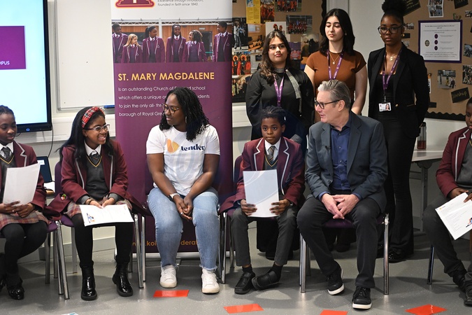 UK Prime Minister Keir Starmer visits the St Mary Magdalene school in London
