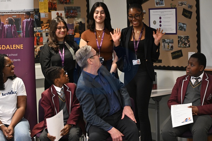 UK Prime Minister Keir Starmer visits the St Mary Magdalene school in London