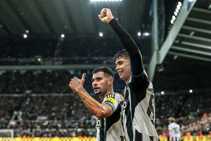 Lewis Miley of Newcastle United celebrates his goal to make it 2-1 during the Carabao Cup Quarter Final match Newcastle United vs Fulham at St. James's Park, Newcastle, United Kingdom, 17th December 2025, Credit:Ae Cosgrove/News Images / Avalon
