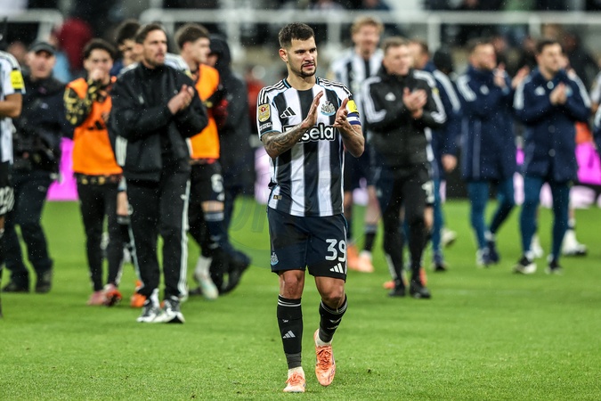 Bruno Guimaraes of Newcastle United applauds the fans after the game during the Carabao Cup Quarter Final match Newcastle United vs Fulham at St. James's Park, Newcastle, United Kingdom, 17th December 2025, Credit:Ae Cosgrove/News Images / Avalon
