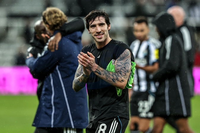 Sandro Tonali of Newcastle United applauds the fans after the game during the Carabao Cup Quarter Final match Newcastle United vs Fulham at St. James's Park, Newcastle, United Kingdom, 17th December 2025, Credit:Ae Cosgrove/News Images / Avalon