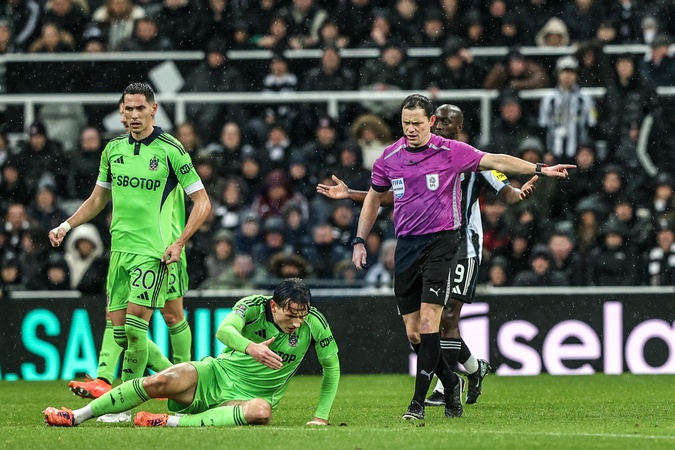 Referee Darren England gives a free kick to Fulham during the Carabao Cup Quarter Final match Newcastle United vs Fulham at St. James's Park, Newcastle, United Kingdom, 17th December 2025, Credit:Ae Cosgrove/News Images / Avalon