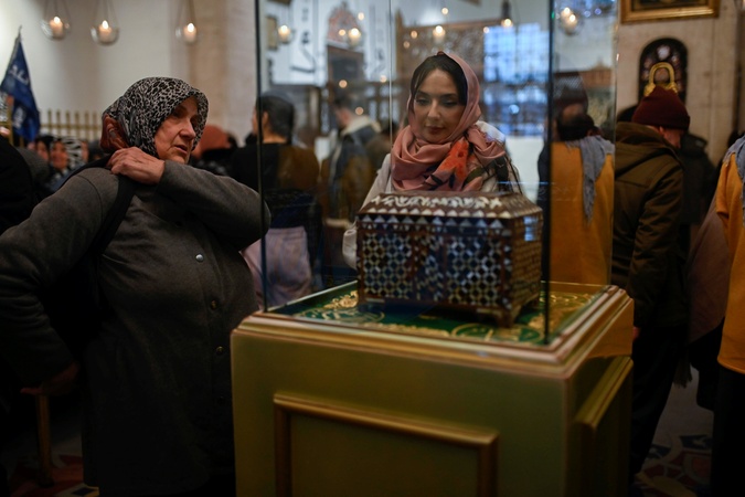 The 752nd anniversary of the death of the mystic Mevlana Celaleddin Rumi concluded with numerous visitors to the museum-mausoleum and the sema, the dance of the whirling dervishes, at the Mevlana Kultur Merkezi. Pictured: Women visiting the Mevlana museum-mausoleum. Konya, Turkiye 17 December 2025, Credit:Valeria Ferraro / Avalon