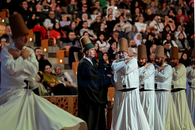 A moment from the sema ceremony commemorating Rumi's death. The 752nd anniversary of the death of the mystic Mevlana Celaleddin Rumi concluded with numerous visitors to the museum-mausoleum and the sema, the dance of the whirling dervishes, at the Mevlana Kultur Merkezi. Konya, Turkiye 17 December 2025, Credit:Valeria Ferraro / Avalon
