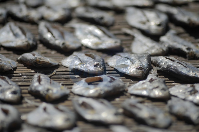 Chattogram, Bangladesh- Dry Fish process at an open drying yard in Chattogram, Bangladesh. The fish are cleaned, salted, and sun-dried on bamboo platforms for four to seven days, depending on weather conditions. Dry fish processing requires consistent heat and remains a vital food source in Bangladesh, accounting for the fourth-largest share of fish consumption and providing an affordable protein across all income levels. The dried fish are distributed for domestic use and export., Credit:Md Rafayat Haque Khan / Avalon