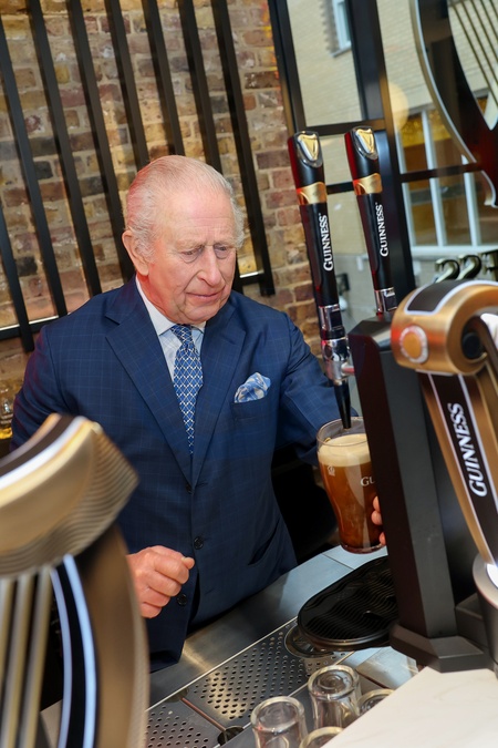 King Charles III pours a pint of Guinness during his visit to Guinness Open Gate Brewery London on December 18, 2025 in London, England., Credit:Avalon.red / Avalon