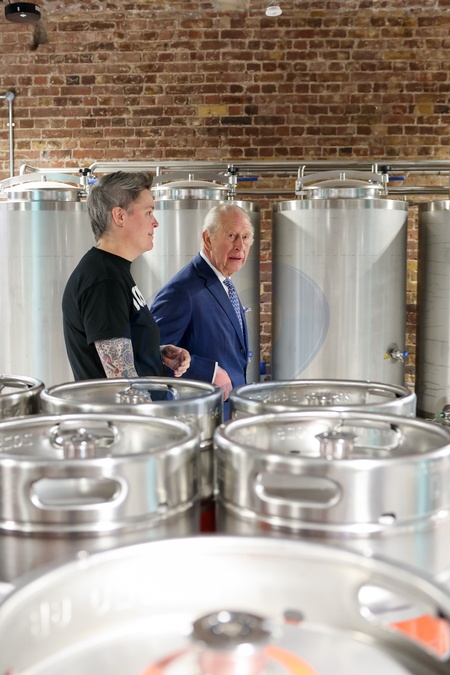 Hollie Stephenson, Master Brewer gives King Charles III a tour of the microbrewery during his visit to Guinness Open Gate Brewery London on December 18, 2025 in London, England., Credit:Avalon.red / Avalon