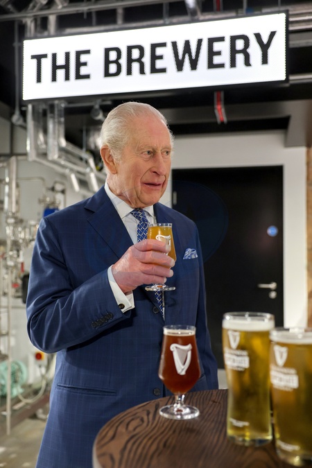King Charles III tastes a Guinness during his visit to Guinness Open Gate Brewery London on December 18, 2025 in London, England., Credit:Avalon.red / Avalon