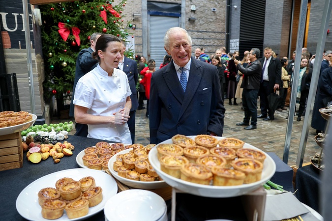 King Charles III meets local community groups and businesses in Old Brewer's Yard during his visit to Guinness Open Gate Brewery London on December 18, 2025 in London, England., Credit:Avalon.red / Avalon