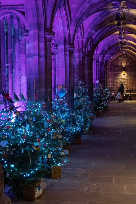 Chester cathedral, Chester, Cheshire, North west England. Christmas trees on display.United Kingdom. 16 December 2025, Credit:Mark Fairhurst / Avalon