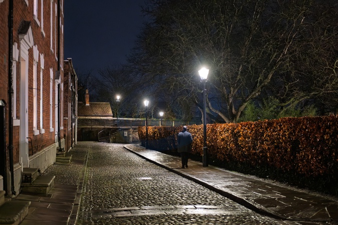 Cobbled roads near the Roman walls and Cathedral in Chester, Cheshire, North west England. . United Kingdom. 16 December 2025, Credit:Mark Fairhurst / Avalon