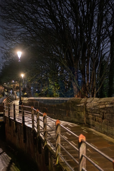 Walks along the Roman walls of Chester at Christmas time. Chester, Cheshire, North west England.