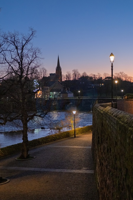 Evening and sunset across the Old Dee bridge and River Dee.Chester, Cheshire, North west England. . United Kingdom. 16 December 2025, Credit:Mark Fairhurst / Avalon