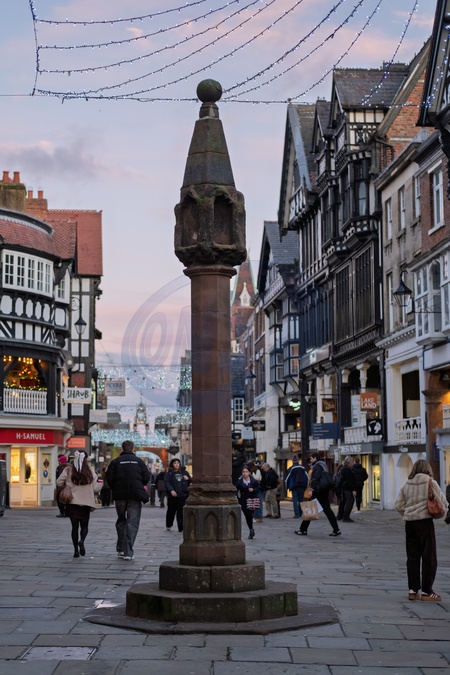 The Chester Cross in Watergate street, dates from 1476 in Chester, Cheshire, North west England. . United Kingdom. 16 December 2025, Credit:Mark Fairhurst / Avalon