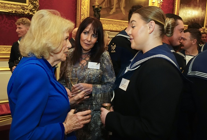 Queen Camilla (left) during a reception at St James's Palace in London, to celebrate the return of HMS Prince of Wales from an eight-month deployment with the Carrier Strike Group (CSG25), known as Operation Highmast. Picture date: Thursday December 18, 2025., Credit:Aaron Chown / Avalon