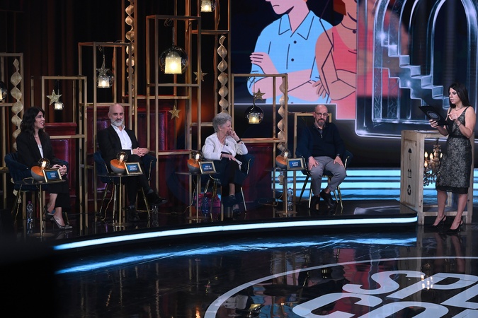 TV show "Splendid Frame" - Rai 3, pictured: Geppi Cucciari, Ester Viola, Giuseppe Antonelli, Amalia Ercoli Finzi, Alberto Grandi , Milan, Dec 18th 2025, Credit:AGF / Avalon