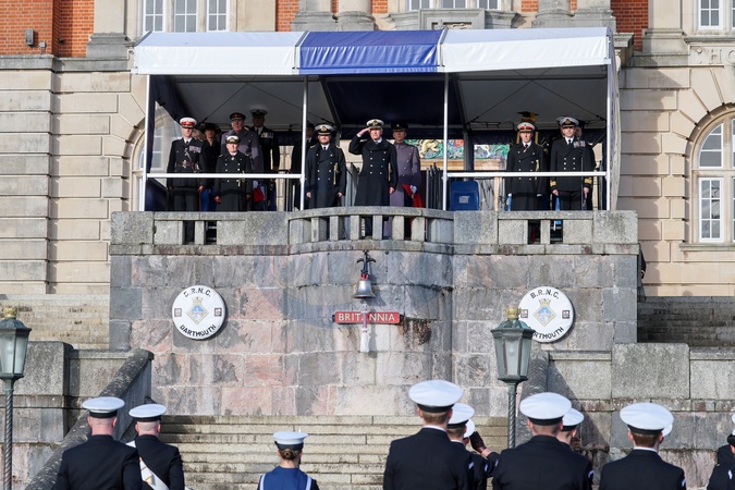 King Charles III, The Lord High Admiral (C) and Captain Andrew Bray (L) preside over the Lord High Admiral's Parade at Britannia Royal Naval College on December 19, 2025 in Dartmouth, England. King Charles III, The Lord High Admiral, presides over the Lord High Admiral's Divisions at Britannia Royal Naval College (BRNC), where he oversees the blessing of the King's new colours and inspects the front ranks, Credit:Avalon.red / Avalon
