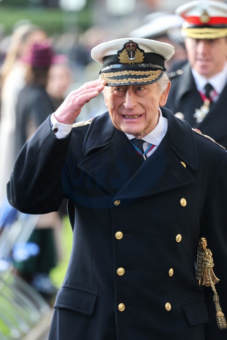 King Charles III, The Lord High Admiral, inspects the Guard during the Lord High Admiral's Divisions at Britannia Royal Naval College on December 19, 2025 in Dartmouth, England. King Charles III, The Lord High Admiral, presides over the Lord High Admiral's Divisions at Britannia Royal Naval College (BRNC), where he oversees the blessing of the King's new colours and inspects the front ranks., Credit:Avalon.red / Avalon