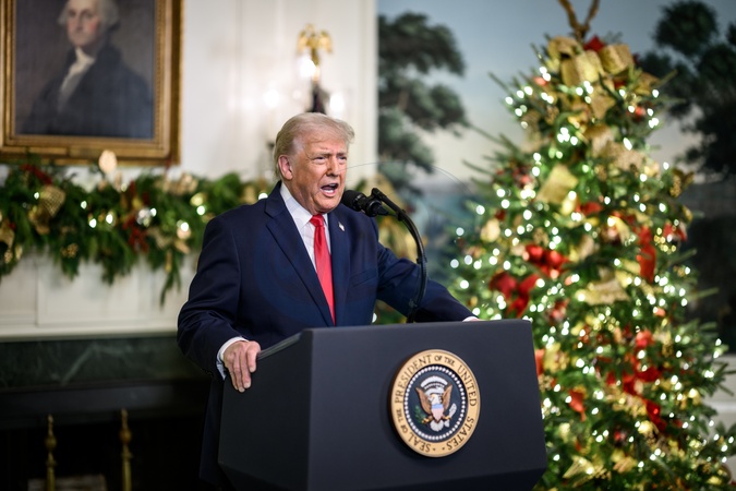 President Donald Trump addresses the nation, Wednesday, December 17, 2025, from the Diplomatic Reception Room of the White House., Credit:Daniel Torok / Avalon