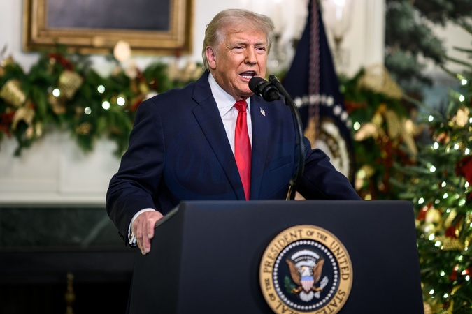 President Donald Trump addresses the nation, Wednesday, December 17, 2025, from the Diplomatic Reception Room of the White House., Credit:Daniel Torok / Avalon