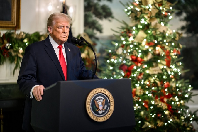 President Donald Trump addresses the nation, Wednesday, December 17, 2025, from the Diplomatic Reception Room of the White House., Credit:Daniel Torok / Avalon