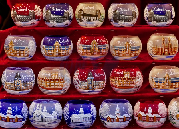 Oxford baubles for sale at the Christmas Market in Broad Street., Credit:Geoffrey Swaine / Avalon