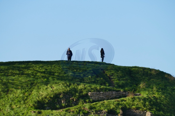 Walkers on top of Oxford Castle mound in the sunshine., Credit:Geoffrey Swaine / Avalon