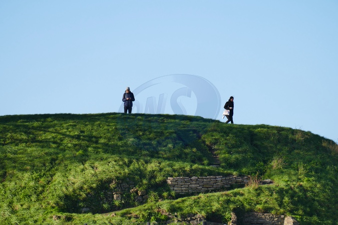 Walkers on top of Oxford Castle mound in the sunshine., Credit:Geoffrey Swaine / Avalon