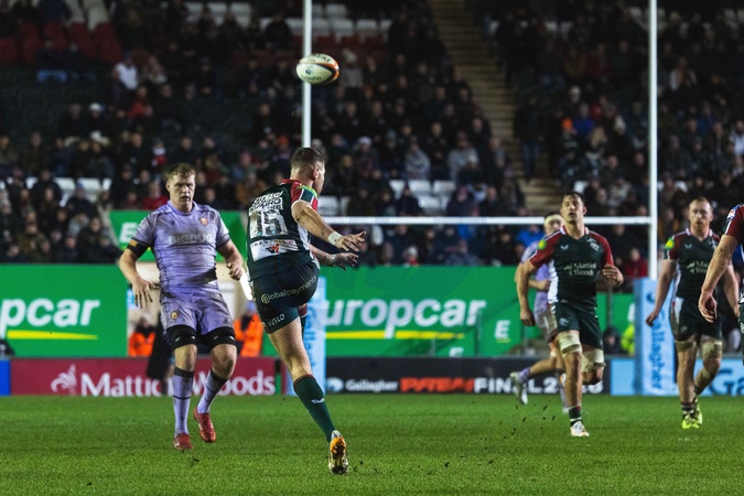 Freddie Steward of Leicester Tigers during the Gallagher Premiership match Leicester Tigers vs Gloucester Rugby at Mattioli Woods Welford Road Stadium, Leicester, United Kingdom, 19th December 2025, Credit:Craig Evans/News Images / Avalon