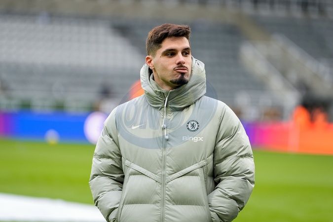 Pedro Neto of Chelsea inspects the pitch during the Premier League match Newcastle United vs Chelsea at St. James's Park, Newcastle, United Kingdom, 20th December 2025, Credit:Maynard Manyowa/News Images / Avalon